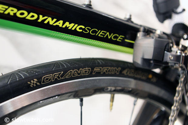Shimano Dura-Ace wheels with Continental Grand Prix tires.