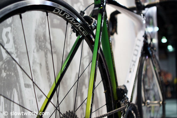 The Orica GreenEDGE Pro cycling team is riding the Scott Foil Team issue and you too can have one of these very stunning aero machines. Images here are from Interbike 2012.