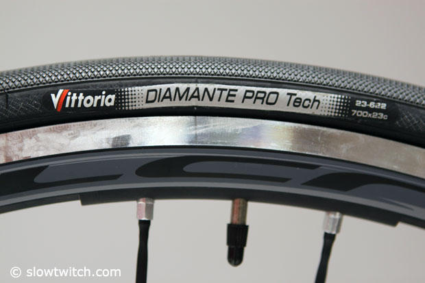 Vittoria Diamante Pro Tech tires on Fulcrum Racing Zero wheels.