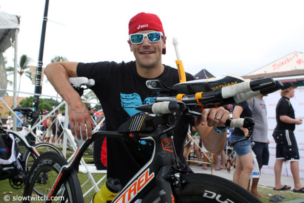 2005 Ironman World Champion Faris Al-Sultan moved swiftly into the transition area.