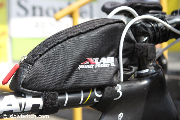 An XLab aero bento box on the top tube of the Boardman AiR.