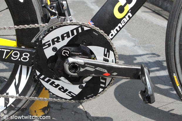 SRAM Red crank and TT chain rings with a Quarq power meter.