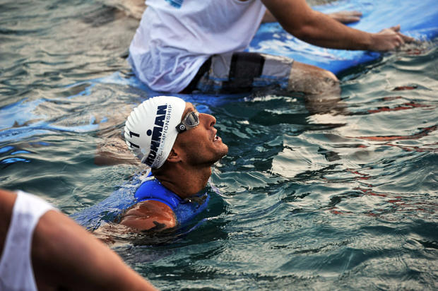 Two time champion Chris McCormack looks at the sky for a good omen, but he ended up with a DNF.