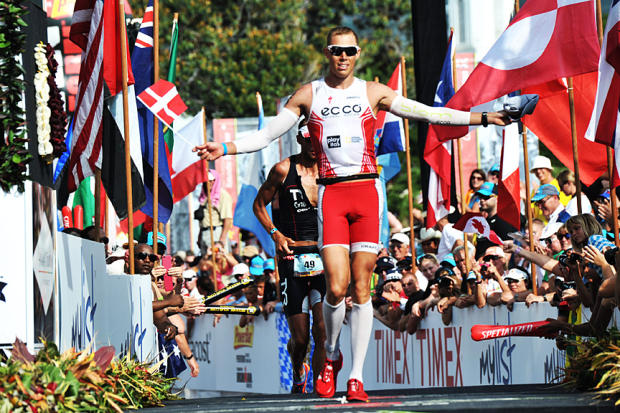 Pete Jacobs posted the fastest runs of the day at Kona in 2010 and 2011. He ran 7 minutes slower this day, but his 3rd-fastest 2:48:05 on a difficult day brought him home first.