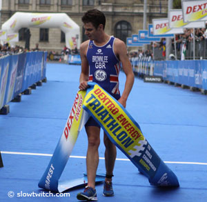 Royle combined a 2nd-best 17:26 swim in the Auckland Harbour, a tied-for-3rd-best 1:08:20 bike leg on a hilly, 8-loop course in downtown Auckland, and a 3rd-best 31:39 run to finish in 1:57:17 with a 3 seconds margin of victory over runner-up Fernando Alarza of Spain and 4 seconds up on 3rd-place finisher Thomas Bishop of Great Britain.