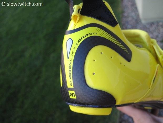 One feature that lends to the overall stiffness of the shoe is a carbon heel counter, dubbed Energy Lock. Before I tried the shoes, I thought this was a gimmicky sales feature that wouldn’t really do anything. How much could a heel really move? Do you really need carbon to hold it together? In fact, from the first time I turned the pedals over with these shoes, the heel counter was the first thing I noticed. Its function becomes very apparent at about 6 or 7 o’clock in the pedal stroke – right as you begin to pull up and back.