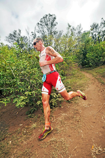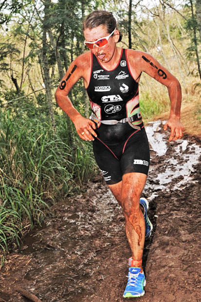 Conrad Stoltz passed Javier Gomez a few miles before the bike to run transition, but surrendered his lead by Mile 1 of the run.