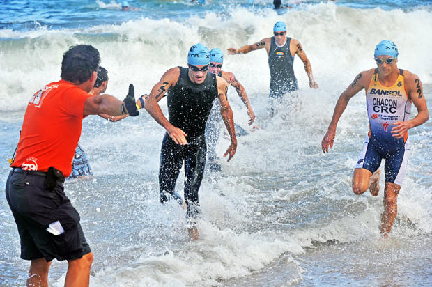 Javier Gomez led the swim by 1:19 and held the lead to Mile 14 of the bike.