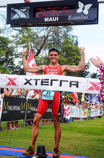 On very rare occasions athletic talent is so transcendent that a superior competitor can walk into a very different, very new challenge and prevail on his or her first attempt. At the 17th XTERRA Off Road Triathlon World Championship in Maui, Javier Gomez of Spain was such man and prevailed against the best talent not only in off road triathlon but also extraordinary talent from pavement racing at the Olympic, 70.3 and Ironman distances. Of course it was no cakewalk. XTERRA USA Pro Champion Josiah Middaugh of Vail put up a valiant fight and came within 47 seconds of Gomez, the 2012 Olympic silver medalist,. Hy-Vee and ITU Grand Final Champ.