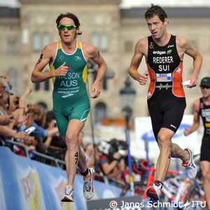 Peter: I was a touch slow getting in and out of T2 so I had to chase on to a lead group six in the first 200metres. After this I figured I would test the others rather than sit in so with a few surges I was able to drop the group down to myself and Ryan Fisher. Then we were able to work together to keep the pace on before I left him at about the 9km mark.