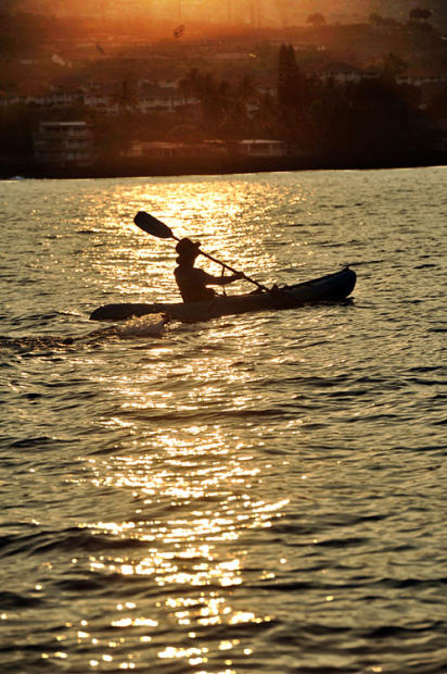 Kayaker on the golden morning Kailua waters.