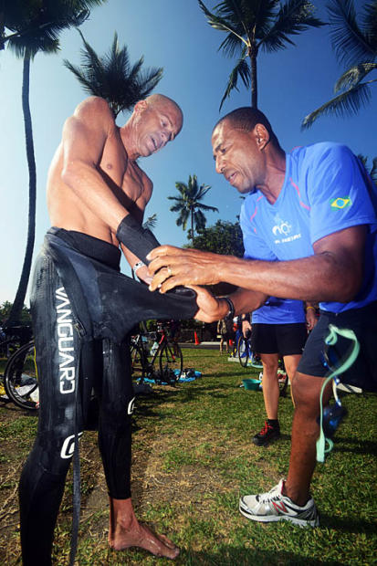 Crew chief and fellow Brazilian Jose Carlos Poinciano helps Alexandre Ribeiro as crew chief for the 8th straight Ultraman.