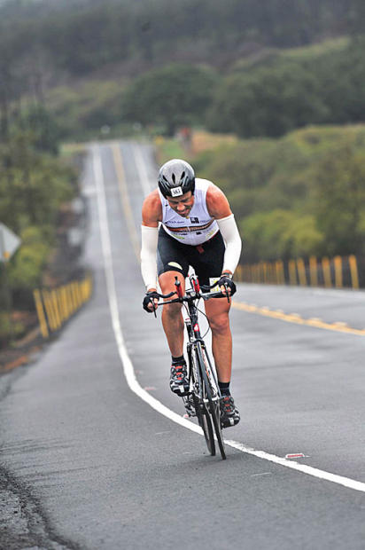 Alexandre Ribeiro of Brazil rode undaunted and ahead alone through several tropical rain squalls on Day 1 and was never headed on his way to a record 6th Ultraman World Championship. Not bad for an ageless 47-year-old father of three.