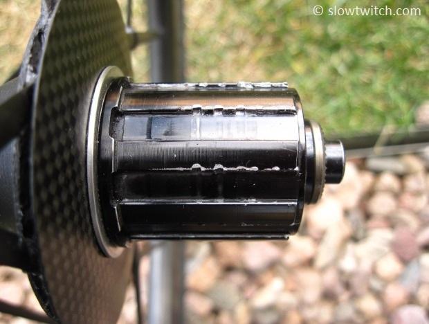 The smallest two or three cogs are wider, and don’t notch nearly as bad. The biggest cogs are usually stuck together via a single alloy carrier, which is wide and does not dig in to the freehub. It’s the middle cogs that are the problem. They’re narrow – only the width of the cog engages to the freehub.