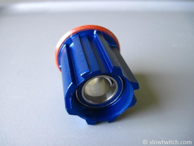 In contrast, here is a Campagnolo-specific freehub, for a Zipp 182 rear hub. Notice the different shape (deeper) splines: