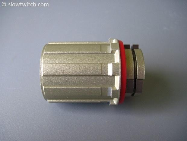 Behold – the Shimano 10-speed ONLY freehub (shown with a 1mm spacer to prove that it won’t fit on the deeper splines):