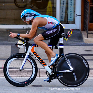 Horst: After the swim I had an almost 3 minute gap on Timo and the other top guys but I didn't know that until the turnaround. It surprised me that the gap was that big and I forced myself to ride a constantly fast speed but I didn't want to over pace like in Cozumel. Besides the temperatures got higher and were over 30 degree Celsius.