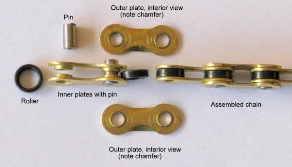 As you can see, there is a lot going on in there. The pins are what hold everything together. The rollers are what actually rest against your chainrings, pulleys, and cassette cogs. The inner and outer plates are the ‘walls’ of the chain. When everything is put together, you’ve got a system that can do all of the wonderful things we want – pedal forward, pedal backward, and shift between gears on our multi-speed bikes.
