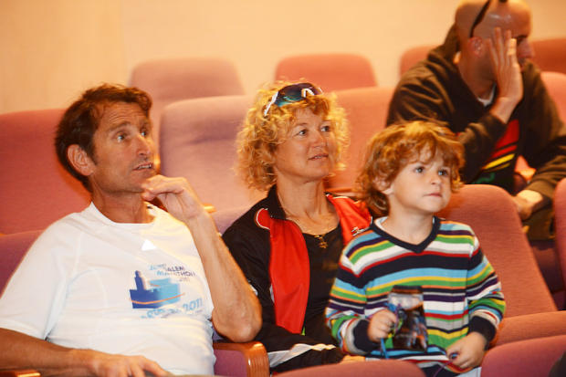 A man and his family attend a pre race briefing.