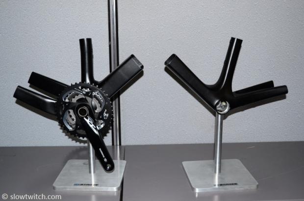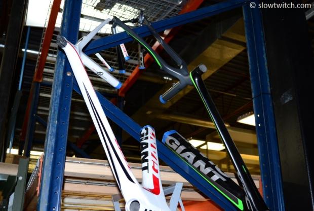 Two Giant frames were sacrificed to become the first Stages display at Interbike 2012.