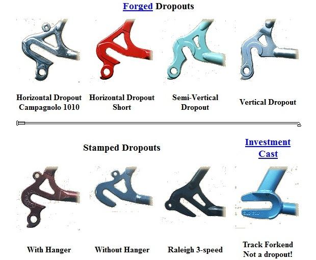 To really have a productive discussion, we need to understand the different styles of dropouts. This graphic is from the late, great, and legendary bike genius – Sheldon Brown: