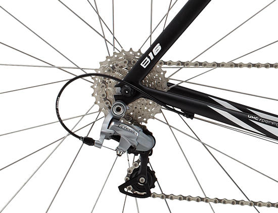 Cervelo claims that their dropouts are somewhat unique in that they meet all specifications for Shimano, SRAM, and Campagnolo components. If you use a wheel that is also within the specifications, you can hit all gear combinations without frame or spoke interference. While this may sound rudimentary and obvious (and you may assume that all manufacturers do it) – not everyone does their homework. You can run in to problems with special setups like junior gearing – which may have a 13 or 14 tooth cog as the smallest cog. If the dropout was only designed with an 11 or 12 tooth small cog in mind, you can run in to trouble.