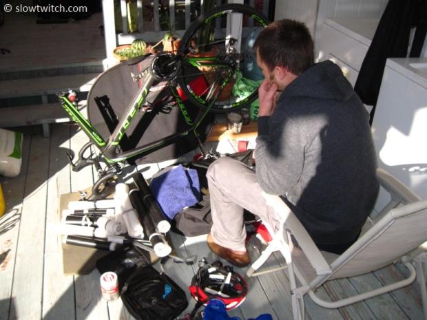 After a few days with the crew from SRAM, we transferred to our base for the remainder of the week. As you can see, David travels in style to swim practice.