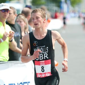 The top four swimmers led the 20 kilometer bike leg alone until Ryan Bailie and Dan Wilson joined them heading into T2 and out on the run. Bailie tried but failed to break away and, with 400 meters to go, Kerr inched away and crossed the line in 1:00:19 with a 4 seconds margin on runner-up Bailie and 7 seconds on 3rd place Jamie Huggett.
