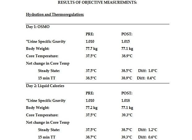In a nutshell, I had higher fluid throughput with Osmo. I was able to absorb more fluid, maintain more blood volume, sweat more, and stay cooler.