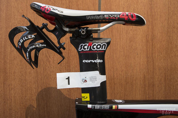 Van Lierde uses the 3T Aduro cockpit on his Cervelo P5.