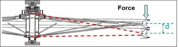 Torsional stiffness is concerned with the ‘twisting’ of a wheel – for example, when you accelerate hard in a sprint (thanks to our friends at Mavic for lending the following few graphics):