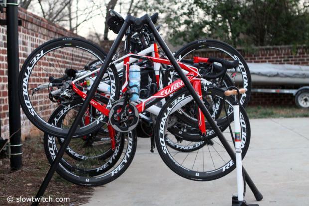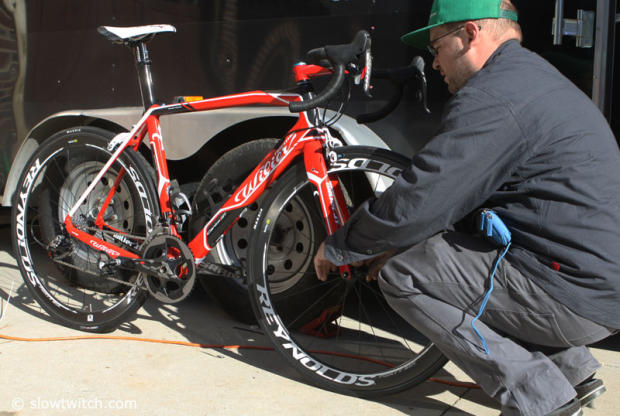 Meanwhile outside on another cold morning Frank Travieso readies his new Wilier ride.