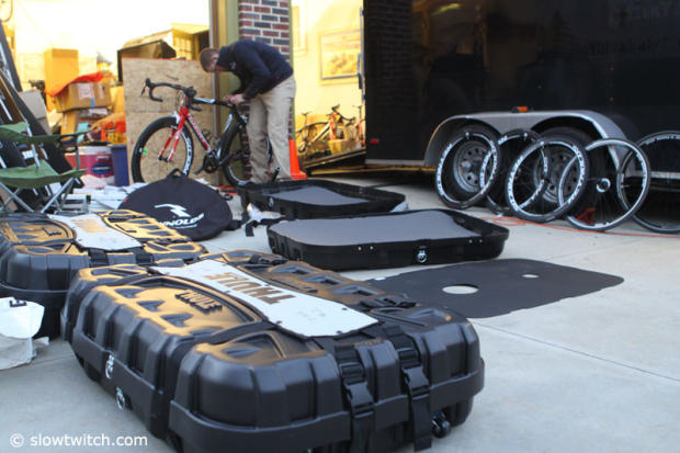 Some of the athletes readied their bikes for the pending departure to Tucson.