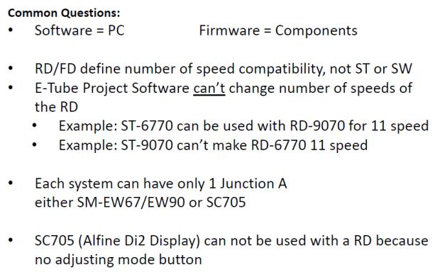 Shimano tells us that they are getting a lot of questions regarding cross-compatibility of systems (we certainly had some questions of our own). They provided this information to answer some of the more common concerns: