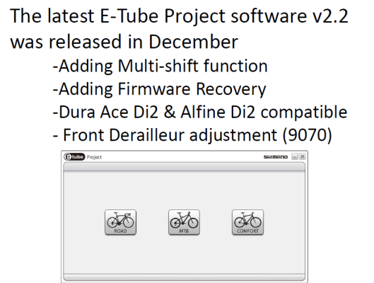 The whole idea behind E-Tube is that you can update, upgrade, and change the functionality of your components. Similar to many of the power meters and GPS devices we’re familiar with, not only do you need to keep the firmware of the component up-to-date, but the software on your computer will need updating as well. The most recent E-Tube version had the following updates: