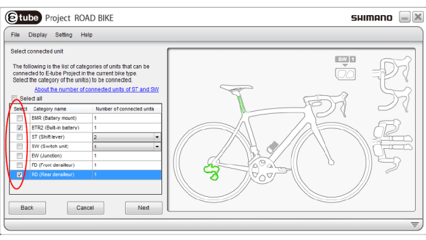 Next, you must select the components that you have on your bike – the number of shifters, derailleurs, and auxiliary switches:
