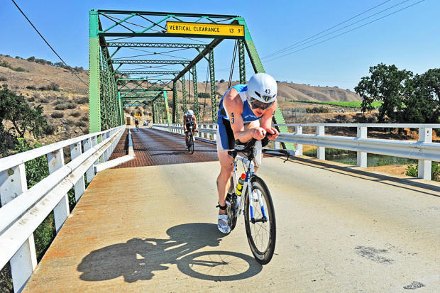 Jeffrey Symonds rides over the bridge at Mile 36.
