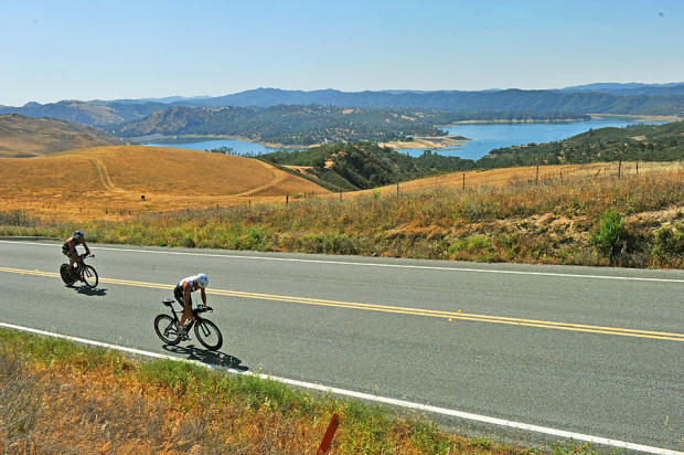 After climbing Nasty Grade, riders cruise past Lake Nascimiento.