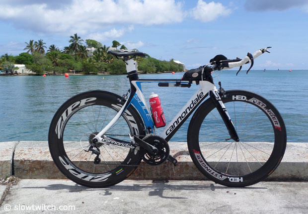 This Cannondale Slice is awaiting the return of the owner who is swimming we suspect.