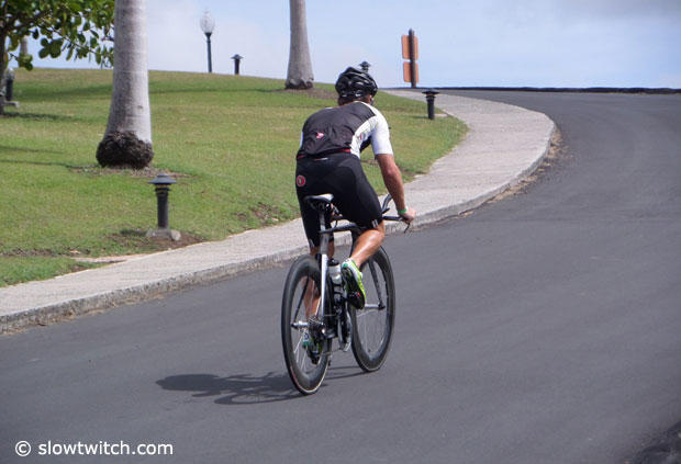 Heading towards the Divi Carina Bay on a 15 percent grade.