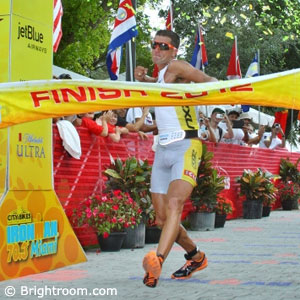 Llanos advanced from 13th after the swim to 9th after the bike to 1st on the strength of a race-best 1:08:41 run to finish in 3:52:36. Llanos had an 18 seconds margin of victory over the runner-up, Belgian duathlon standout Bart Aernouts, and 2:17 over 3rd-place finisher Andreas Raelert of Germany.
