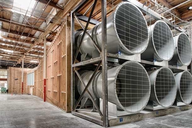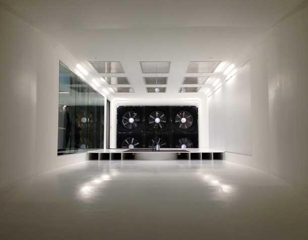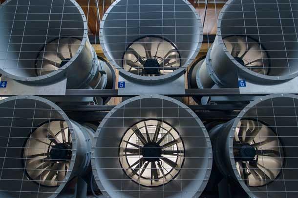 Rather than one large fan, hard to replace or fix quickly when down or broken, Specialized opted for six smaller commercially available fans to power the tunnel.