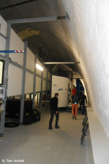 To introduce the newest members of their CXR wheel line, Mavic invited a group of journalists to the wind tunnel located at the CFME, an acronym that in English represents the Competence Group in Fluid Mechanics and Energetics in Geneva, which is a part of HEPIA, or the University of Architecture, Engineering, and Landscaping in Geneva. This unique facility is located just a ½ hour drive from Mavic's Annecy headquarters just over the border in France, which means that its location allows for easy access by the Mavic engineers. The history of the wind tunnel in this location is very interesting in that it is actually built within the walls of what was intended to originally be a train tunnel cut into the side of a hill in the 1920s. The train access was never realized, and when the building that was housing the university's original aero lab was slated to be torn down in the mid-80s, the director at the time realized that the current site could be re-purposed to create a unique structure. One of the main advantages of having the reinforced concrete walls of the tunnel basically imbedded in the side of a hill is that the ambient temperature and humidity ends up being fairly constant year-round. Think of it as a high-tech wine cellar. The current facility was completed in 1995.