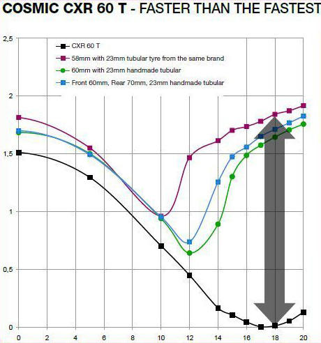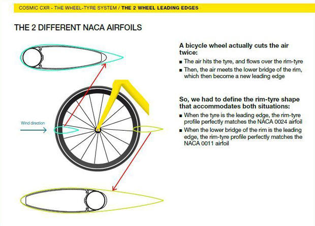 Well…enough about the design and facilities, let's talk about the wheels. The new CXR60 wheel range is composed of a tubular (CXR60T) and a clincher version (CXR60C), both with a depth of 60mm. The tubular version is based on the NACA 0029 and 0017 foil profiles, while the clincher version, apparently due to design restrictions related to the clincher construction, is based on the NACA 0027 and 0012 profiles.