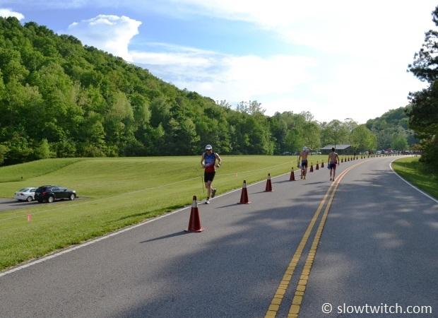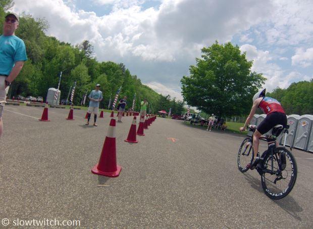 You do them all, and the cumulative time of all the races determines your finishing place. There is also an option to do only the half, for those without the {cough} cojones to try for the full event. The total mileage is almost identical to an Ironman, at about 140 miles. Note that the two Olympic races are actually slightly long, with run distances of 6.55 miles (the same course gets doubled for the Sunday race of 13.1 miles). All races feature a time-trial start, in groups of two or three participants.
