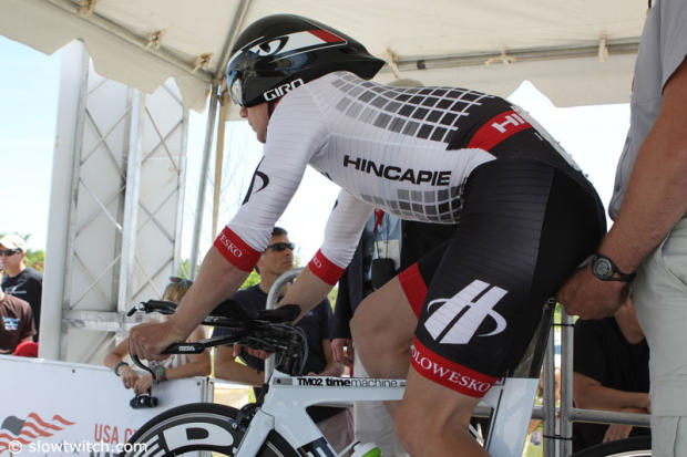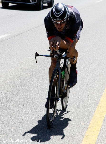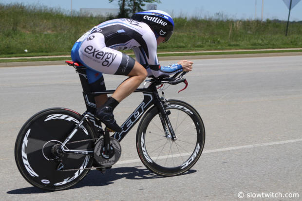 Bren Bookwalter set a hard pace early on but trailed Tom Zirbel by 4 seconds at the halfway point.