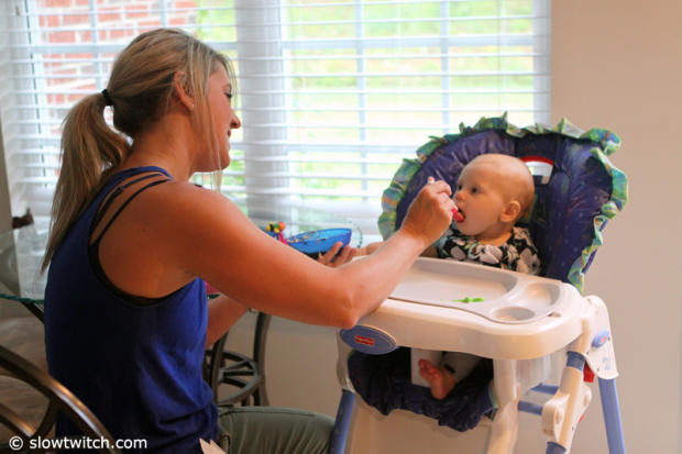 Playtime with Abby as mommy Tonya gets ready for a workout.