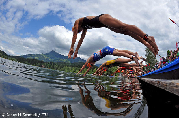 The elite women dive into the water during the 2012 World Triathlon Series race in Kitzbühel.