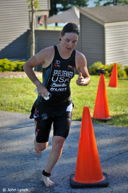 Jennifer Spieldenner is chasing Lauren Brandon who led out of the water.