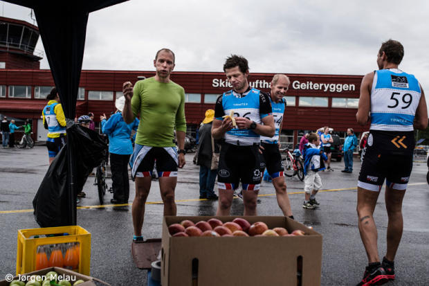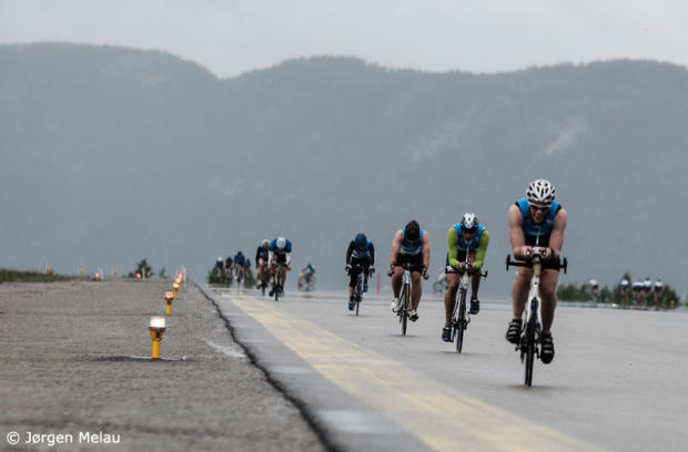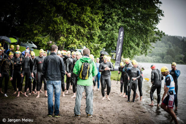 All lined up and ready for this sprint triathlon in cozy Norwegian conditions.